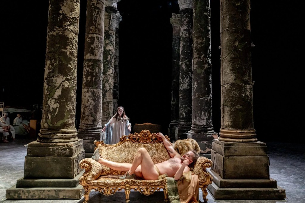 În somptuos-caricaturialul spațiu de joc, Silviu Purcărete (pe ritmuri muzicale în care solemnitatea de curte se amestecă fascinant cu apocalipticul) dă drumul emancipării femeii, scoasă din cutie și din țiplă (!) doar spre a-și depăși condiția de proprietate a bărbatului, orbit vremelnic de frumusețea pradei, zestrea ei trecătoare. Care-i va pecetlui prăbușirea.