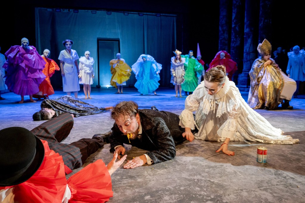 Într-un vizual spectacular înțesat cu slăbiciuni umane ce-l umplu până la refuz cu grotesc și ridicol, cu intrigi, comploturi, dragoste, minciună, ură, trădare, orgoliu, ambiție și răzbunare, toate în căutare de multiplă legitimare, așezând în toate relațiile din scenă straturi de sens și metaforă peste comentarii acide și lupte pentru putere, care maculează în final împreună, cu toată moartea de care sunt în stare, așternuturile albe ale acestui imens ospiciu elisabetan.