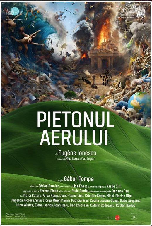 Așa mi s-a arătat „Pietonul aerului” de Eugène Ionesco montat la Teatrul Național „Lucian Blaga” din Cluj-Napoca de Gábor Tompa, cred că cel mai frumos Ionesco din istoria personală (precizez că mă număr printre spectatorii care n-au avut bucuria să întâlnească celebra „cântăreață cheală” a regizorului, dar au așezat la loc de cinste „Lecția” – a doua a lui Mihai Măniuţiu, cea din 2015 cu Ofelia Popii și Constantin Chiriac – aceluiași Național clujean).