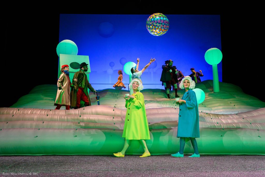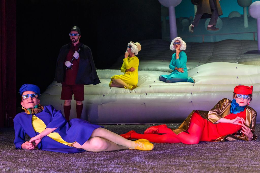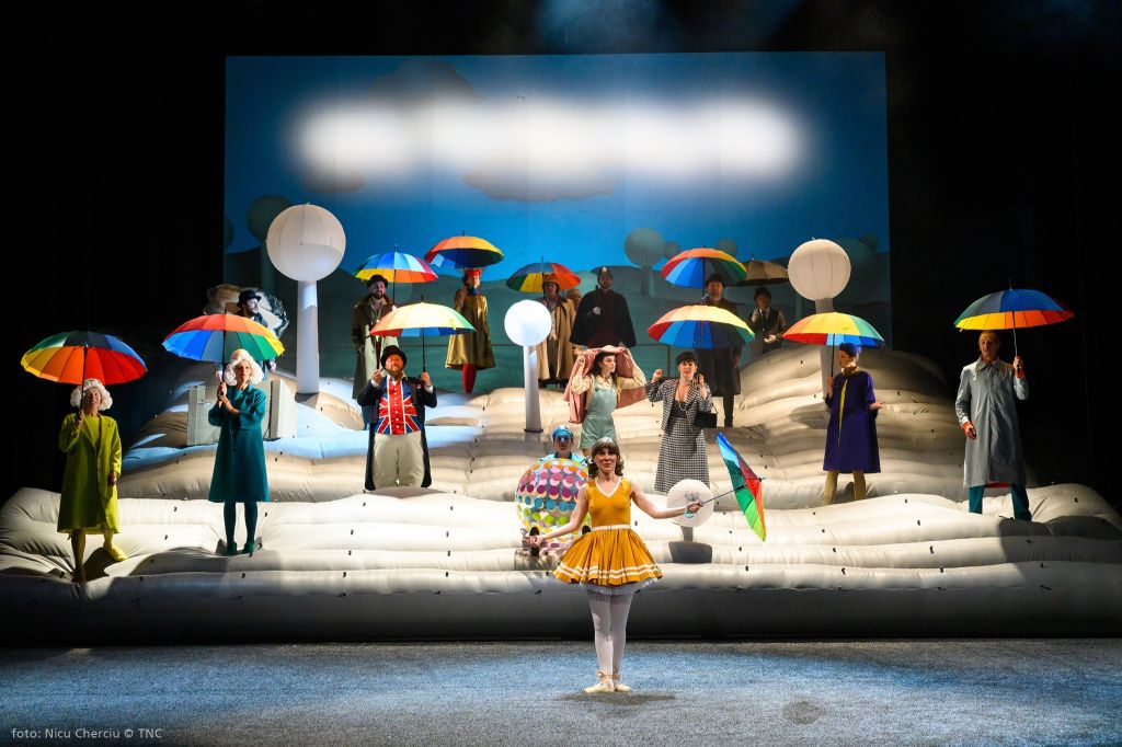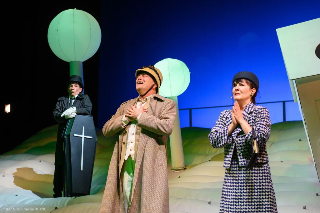 La capătul celălalt al aceluiași uman, obiectul urii sale, mereu alături numai spre a-i face posibile definițiile: Visătorul. Cu toată nevoia lui de joc, cu nădejdea naivă că va putea să zboare, cu tot curajul de a se desprinde și a se înălța, cu toată forța gândirii sale și curiozitatea ființei lui de a scruta orizonturi mai largi, de a vedea dincolo de dealuri, poate o nouă vale pe care să o deschidă vraiște spre a fi admirată și de omul înțepenit în certitudini căruia nu-i pot fi profețite decât nenorociri. Așa că se ridică preventiv zeci de centimetri deasupra pământului (și certitudinilor sfintei scânduri), gonflând naiv (!), întru derută, un mirific peisaj englezesc cu look de pictură de Henri Rousseau le Douanier, preferat de Adrian Damian în ingenioasa lui soluție scenografică (excepțional pusă regizoral în valoare și întipărită în vizual de costumele viu colorate ale Luizei Enescu) lui Chagall, cealaltă indicație a dramaturgului după cum zice la carte. Coline gonflabile pline de văzduhul prietenos al visării și imaginației creatoare, înțesate de pomi, personaje și dialoguri absurde, englezești, străjuite de un cottage primitiv din carton alb (ca o căsuță pentru păsărele) numai bun de aruncat în aer, în care Gábor Tompa l-a vârât magistral pe deja veteranul personaj ionescian Bérenger, într-un spectacol genial de teatru absurd. Un eseu teatral-filosofic despre visele de eliberare și glorie ale omului și o excelentă satiră a vieții sociale ce pre(și post)fațează regimurile abuzive totalitare. O joacă de-a timpul și de-a ipotezele ciocnirilor de toate felurile (din universuri absolut paralele!) în cel mai articulat discurs teatral ionescian despre condiția umană și condiția artistului, într-un cadru oniric ce are să ne adăpostească pentru aproape două ceasuri toate spaimele din absurdul cunoscut.