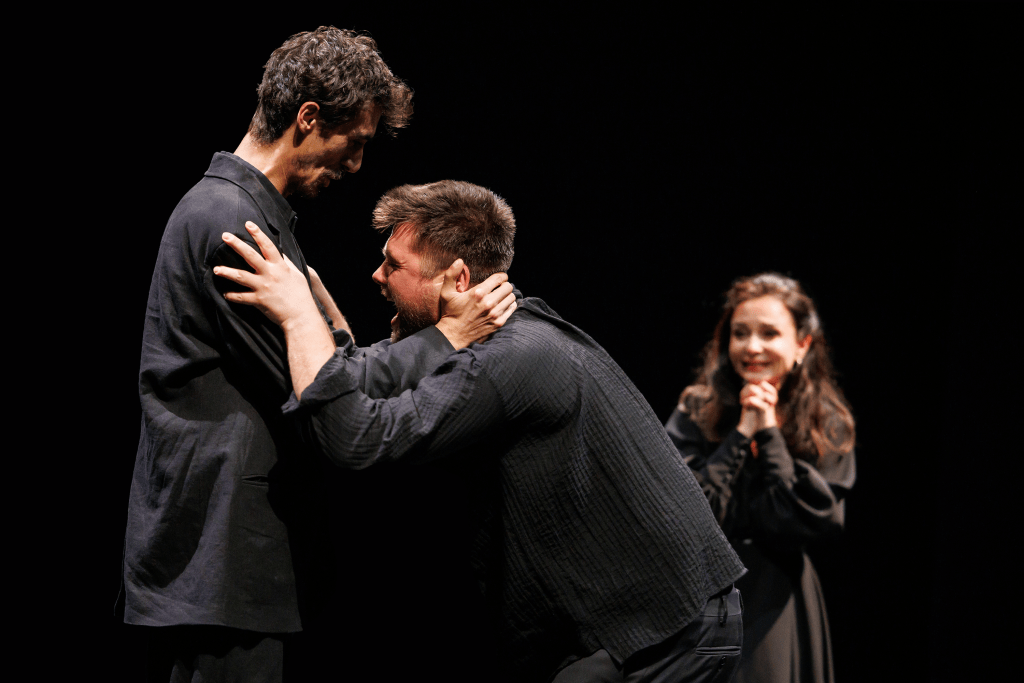 Profund marcați de relația tensionată cu mama superprotectivă a excelentei Andreea Grămoșteanu, energică, vie și decisiv implicată alternativ în relația cu fiecare dintre cei doi parteneri de scenă, pe care-i domină savuros și autoritar, binecuvântată cu o partitură generoasă cu care face deliciul publicului, amendând extrem de priceput și cu foarte mult umor derapajele morale ale Annei, asupra căreia are (și se folosește din plin de) un ascendent solid. S-au împrietenit binișor în călătoria cu trenul de la Sankt Petersburg spre Moscova, unde au coborât mână-n mână în aceeași gară, dar nu se mai pot bate de la egal la egal pe ringul maternal în urma greșelii tragice ce le va separa iremediabil peroanele. Unde mamele se înfruntă degeaba buclă în buclă (nu știu dacă e o întâmplare, dar cred că va funcționa de minune în memoria spectatorului în această mare de negru) după ce iubirea interzisă iese la iveală compromițând orice șansă la dialog, iar focul obraznic din buclele roșcatei este învins fără drept de apel de coama leonină a contesei blonde care și-a mirosit puterea și iese la atac cu lovitura decisivă, punând ordine-n morala vârstelor, a relațiilor și rolurilor (avem de-a face doar cu o mamă și o femeie însărcinată…), interzicându-i încă o dată Annei să-și vadă copilul la care nu are oricum acces sub privirile deja dezaprobatoare ale societății care i-a întors deja spatele (foarte bine marcat comentariul social în scena de la Operă).