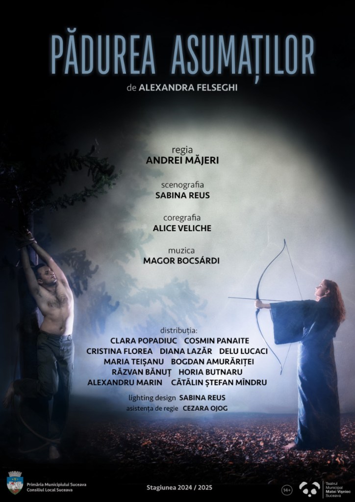Așa ar putea sta scris (sau fluierat (!)) în certificatul de naștere al unui minunat spectacol, „Pădurea asumaților” de la Teatrul „Matei Vișniec” din Suceava, cea mai nouă premieră a lui Andrei Măjeri pe un nou text dramatic al Alexandrei Felseghi, scris și pregătit pentru înscenare cu ceva timp înaintea (!) recentelor alegeri prezidențiale eșuate care au întors România cu Bucovina-n Dunăre. Venite parcă doar să confirme importanța preocupărilor acestei tinere echipe artistice din avangarda teatrului românesc, de multă vreme atentă la provocările cu care este ispitită săgeata ponticului înăuntrul și în afara arcului. Carpatic.