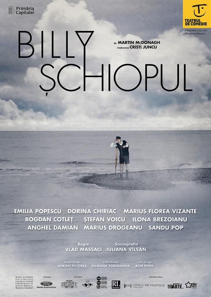 O fantezie delicioasă despre o comunitate izolată plasată pe o insulă îndepărtată de civilizație, de unde oamenii speră să ajungă direct pe dealurile Hollywood-ului. Cu pluta. Într-o comedie de zile mari despre viețuitori cu ambiții mici. A regizorului Vlad Massaci, autor al unui spectacol spumos după „Billy șchiopul” (textul pe care l-a montat în urmă cu 5 ani la Constanța, în altă distribuție, cu aceeași echipă de creație – scenografie și video, și după aproape douăzeci de ani, în altă formulă la Teatrul Nottara). Prima dintre cele trei piese ale Trilogiei Insulei Aran (sub titlul original „Schilodul din Inishmaan”) a unui autor irlandez foarte bine primit în spațiul nostru, Martin McDonagh, un dramaturg cu un umor foarte special, negru chirurgical, pe care același Vlad Massaci îl explorează cu succes și în această stagiune în „Locotenentul din Inishmore” (la Teatrul Mic), a doua piesă din trilogie (cea din urmă, „Spiritele din Inisherin”, a fost transformată în scenariu cinematografic și s-a materializat în 2022 în celebrul film regizat de McDonagh însuși).