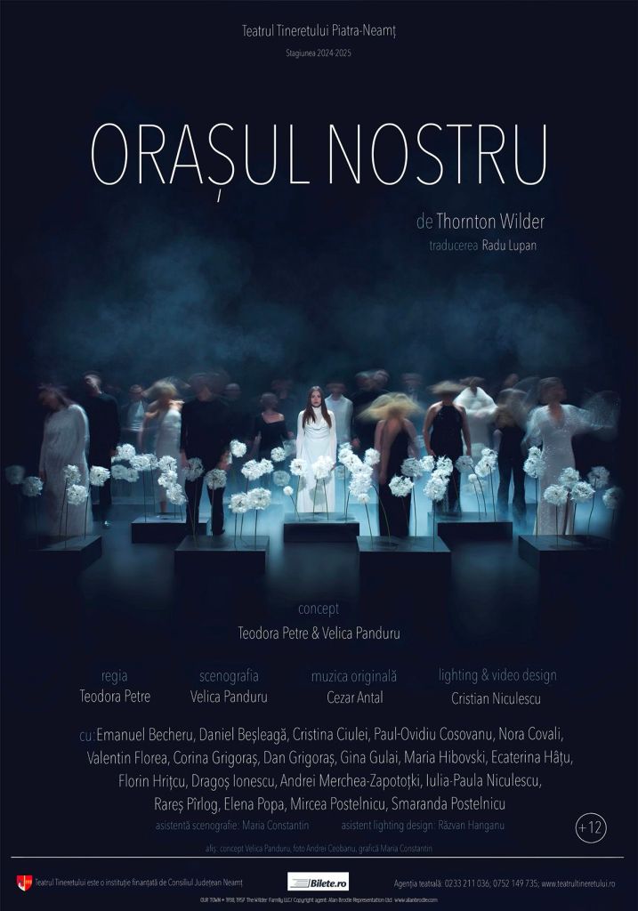 Destul de mult jucat pe scenele noastre, textul lui Thornton Wilder (singurul scriitor american câștigător al trei premii Pulitzer, unul pentru romanul „The Bridge of San Luis Rey”, celelalte pentru dramaturgie, dintre care unul chiar pentru „Orașul nostru” – una dintre cele două piese care i-au adus lui Wilder celebritatea, alături de „The Matchmaker”, cunoscut mai apoi ca musical sub numele „Hello Dolly!” -), scris cu aproape un secol în urmă și pus în scenă pentru prima dată în anul 1938, celebrează umanul și face apel la conștientizarea valorii viețiii, chiar și a celei mai neînsemnate. Structura lui a fascinat de-a lungul vremii întrega lume, nu doar teatrală (Lars von Trier s-a inspirat din această scriere dramatică pentru celebrul „Dogville”), pentru că are un șarm aparte, bucurându-se de un narativ simplificat până la esență (de aceea și foarte ofertant actoricește, pentru că poate fi împins spre orice cheie de interpretare în pofida unor aparențe destul de cuminți) construit în așa fel încât să poată fi impregnat de personalitatea celui care o montează, imaginația celui care o așează în rama teatrală și chiar de specificul publicului (chiar și al locului) în care se joacă. Nu și-a pierdut în timp valoarea sa de experiment, toate înscenările fiind tributare propunerii autorului de a lăsa spațiul scenic cât mai liber de obiecte spre a construi în jurul poveștilor personajelor, dinadins desofisticate până la banalizare spre a fi ușor integrate într-o epocă sau un geografic oarecare. Cu atât mai mult un loc precum Piatra Neamț, un tărâm cu o vibrație specială în care și-au găsit casă primitoare în ultimii ani multe spectacole de teatru experimental, pregătind publicul local pentru un altfel de univers spectacular.