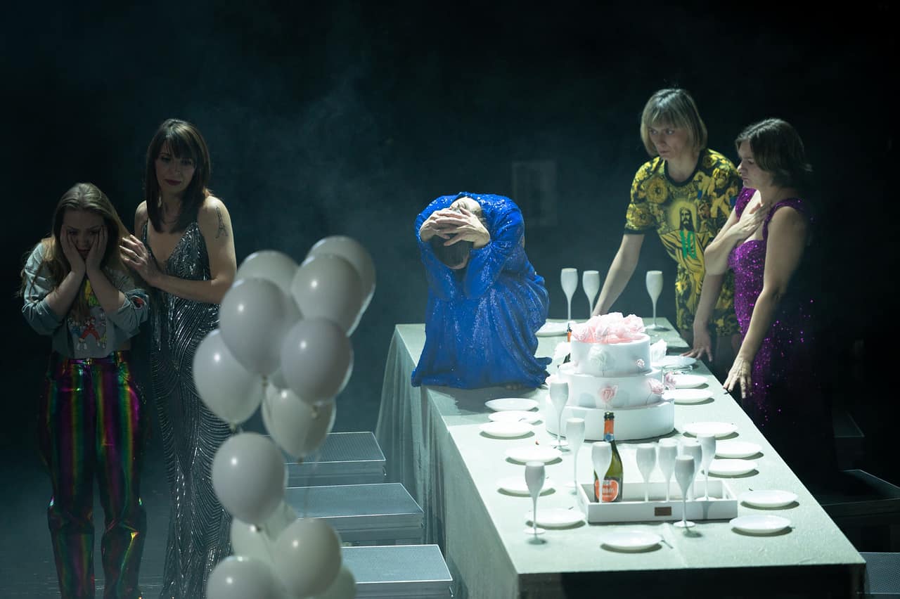 O viață înțesată de repere mai mari sau mai mici (bucuria nașterii, mirosul de heliotrop, destăinuirile prietenilor, un fum de țigară, prima iubire, un meci de baseball, o durere de genunchi, cea mai frumoasă nuntă, o vizită la Paris, un lighean de fasole, un scrin vechi) transformată într-o viață ridiculizată fără-ncetare în acest act dedicat nunții, un spectacol teatral – dar și social și muzical – în sine, închis cu sunet neașteptat de altfel de clopote. Dintr-un univers bagatelizat fastuos, nebăgat în seamă ori chiar batjocorit de-a lungul vieții, în special în momente de teatru social (cum e nunta, poate chiar inventată de femei!), un univers considerat cuvenit, folosit adesea fără discernământ, dezmembrat cu ecouri reci de nepăsare (excelentă opțiunea de a demonta și scoate cu ecou metalic din scenă toate elementele de decor care au fost martore la viața ce a pulsat odată banal și vesel între cei trei pereți ai scenei) și recuperat intens în ultimul act, care-și va aduna cu greu fulgii după ultima scuturare de păpădie către al patrulea perete.