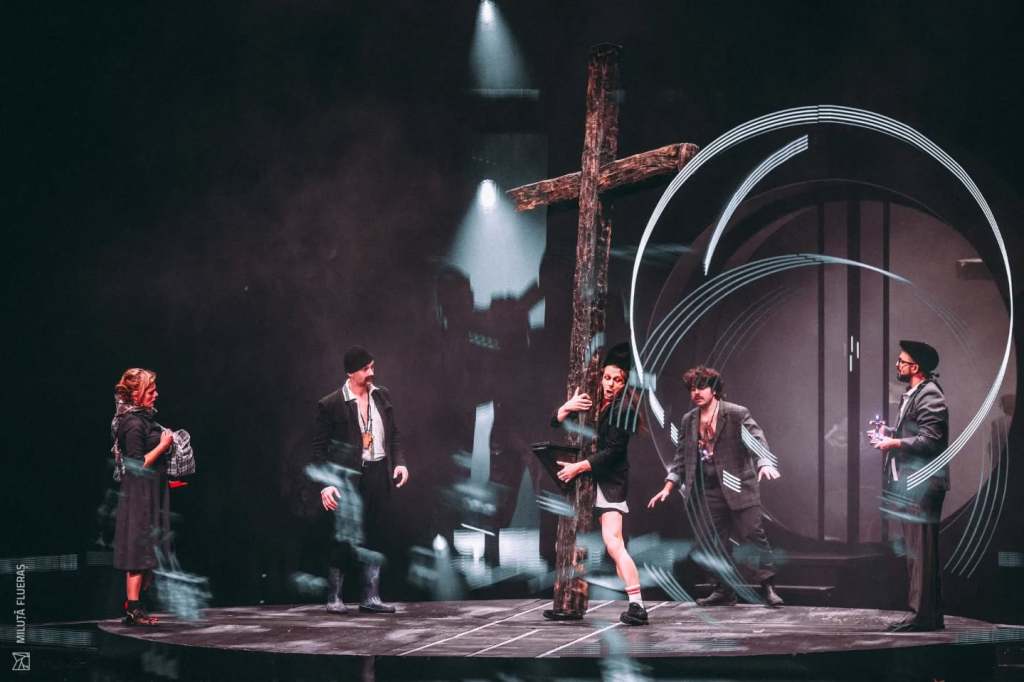 Un spectacol ca scrâșnetul unei rigle (cu care proorocul i-a lovit mai întâi pe toți peste palmele întinse a iertare) trasă cu putere pe tabla încă neștearsă a istoriei, plină de erezii și nerozii care sfredelesc și timpanele cele mai rezistente. Peste care își aștern nevinovați istoriile personale și acești eroi de parabolă biblică, ce vor să pună umărul la inevitabilul sfârșit al lumii, ridicați din coșmarul primitivismului și propulsați direct pe scena răstignirii pe care o vor replicată întocmai. Legați în chip neconformist de Botond Nagy într-un show despre spectacolul incredibil al luptei dintre întuneric și lumină, la adăpostul unei cruci uriașe, sub privirile plecate ale sfinților care parcă nici nu cutează să privească spre obscenul acestui sacru ocult, în fapt doar o snoavă populară de mari dimensiuni care le-ar putea trăda hohotele de râs din aceleași priviri ascunse.
