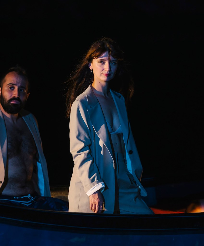 Din capul locului, un calcul cât se poate de simplu ne demonstrează rapid (pe două voci care ne așteaptă în scenă să ne introducă în poveste, Eliza Păuna și Alexandros Raptis, doi foarte atenți și talentați tălmăcitori narativ-muzicali, care ne vor însoți și ghida vocal și instrumental prin melopee) că mai bine ascultăm toate cele 12.109 versuri ale Odiseei lui Homer citită de Poseidon în greaca veche (sau chiar de zeița Athena în limba română (!)) decât să-l așteptăm, împreună cu neconsolata lui Penelopa, pe Ulise. Cel ajuns din Itaca în Troia în doar trei zile, dar căruia i-au trebuit 10 ani să ajungă înapoi… După 10 ani de război…
