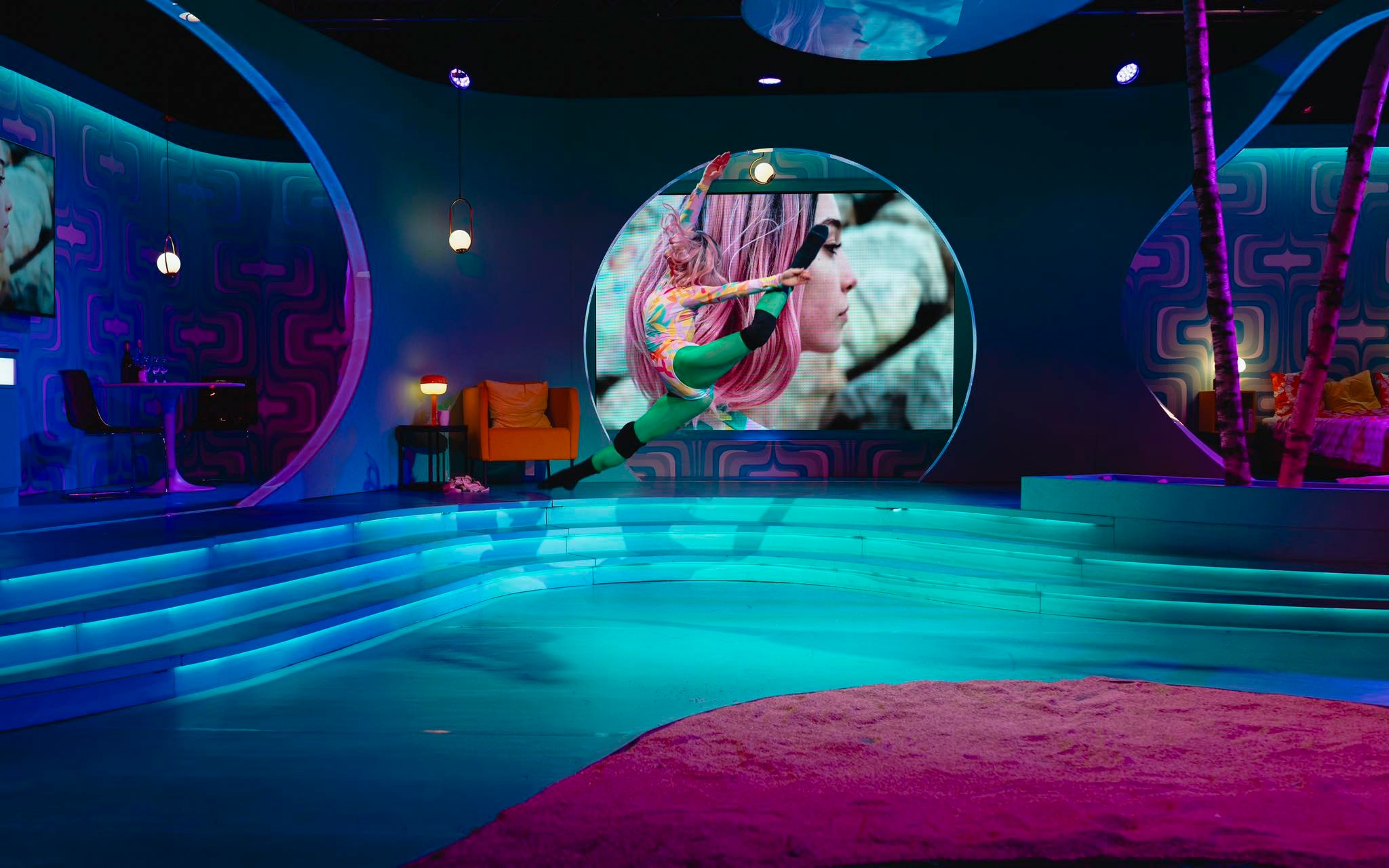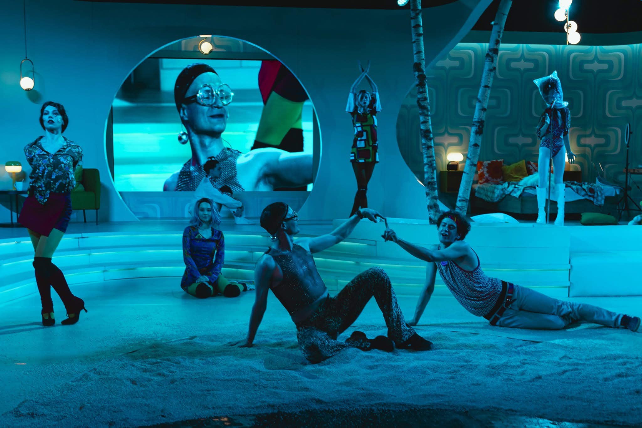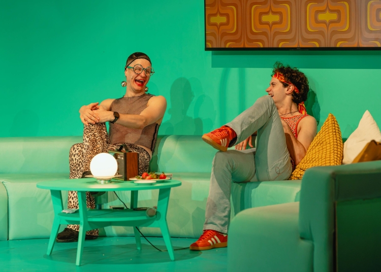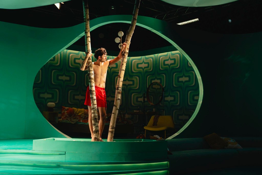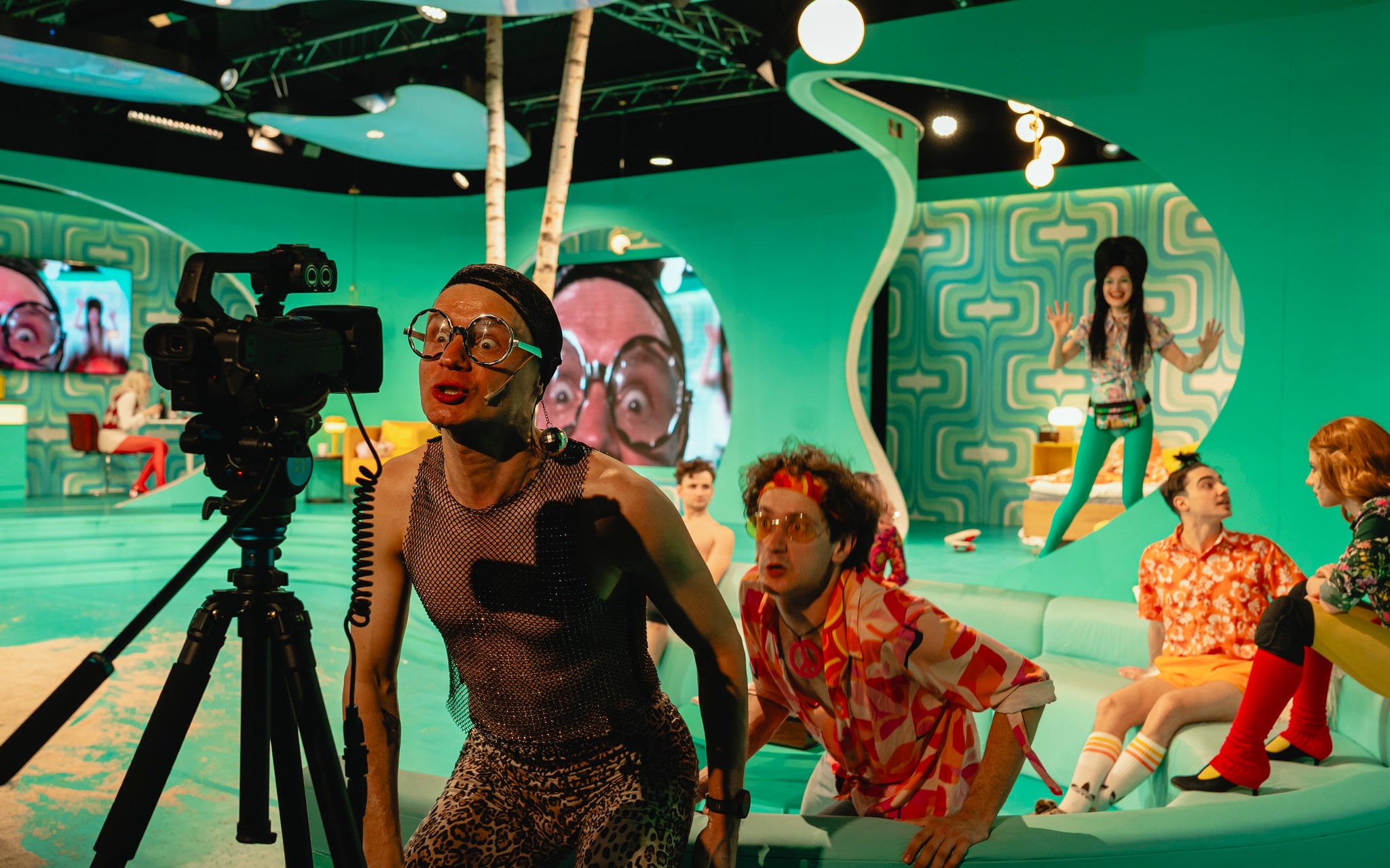 Am plecat de la Teatrul Lúcido sub Imperiul Kubrick, probabil una dintre ultimele referințe din spectacol, care mi-a activat instantaneu imagini colorate la care privisem fascinantă în urmă cu mulți ani. E vorba de un anume fel de imprimare pe retină a unor emoții pe care le trezește acest creator în mine de fiecare dată când spectacolele lui colorate (care au această componentă de retro-futuristic vizual, aici supra-dimensionată, dublată de obicei acustic) mă lovesc în plex. De fapt este o trimitere înapoi în timp, respectând întru totul normele cotidianului (pe care le studiază cu mare consecvență), reușind să facă trecutul inteligibil și fermecător și pentru generațiile de acum și pentru cele care au trăit în aceleași vremuri cu el, așa că tot ce se arăta teribilist, șugubăț și novator în tinerețea lui artistică acum devine suprainovator și plin. Nu întâmplător o are din nou alături pe scenografa Irina Moscu, un excelent artist vizual și poet al spațiului, care este în stare nu doar să transpună în minunate tablouri teatrale visele afrimiene și viziunile lui mai vechi și mai noi, ci să le ducă mai departe. Decorul ei urmărește linia celor câteva (foarte puține) scene din interiorul futuristic al scriitorului lui Stanley Kubrick din „Portocala mecanică” a anilor ’70 (mixate cu spațiul colorat al locuinței personajului principal), pe care însă le aduce într-un azi luminat și colorat, dedicat clătirii ochiului privitorului cu frumusețe și intrigă deopotrivă. Hublourile de formă neregulată din locativul ei fascinant propun un uriaș schweitzer vizual de sorginte kubrickiană, prin ale cărui găuri generoase poți privi cu încredere spre consistența brânzei care a stat multă vreme la fermentat ca să devină delicatesă, scotocind locativul și transformările lui în ultimele decenii (în fiecare dintre spațiile dedicate din această locuință de lux – dormitor, bucătărie, living). Dar le-a tradus în limbaj litoral estival, folosindu-se de marginile neregulate ale hublourilor ca de niște bule de apă ce se sparg uimite în turcoazul nebun din ochii unui submarin, scufundat în adâncurile celei mai liniștite mări ca să fie sigură de puterea intimității lor pentru teatralul afrimian.