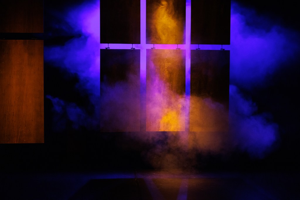 Trei condeie care scriu cu mare pricepere istoria celor mai importante momente biografice ale Olgăi în greoiul jurnal-palimpsest (la propriu, foarte ingenioasă și puternică soluția scenografei Gabi Albu, care ne așează în față câteva panouri metalice grele, reci și ruginite (!) atârnate de tavan, pe care Radu Apostol le va integra ingenios în jocul actrițelor, acustic și vizual, folosindu-se de proiecții, ecleraj și amplasarea în scenă a personajelor pentru a obține imagini dinamice teatral/documentare, ridicate incredibil în scenă din aproape nimic).