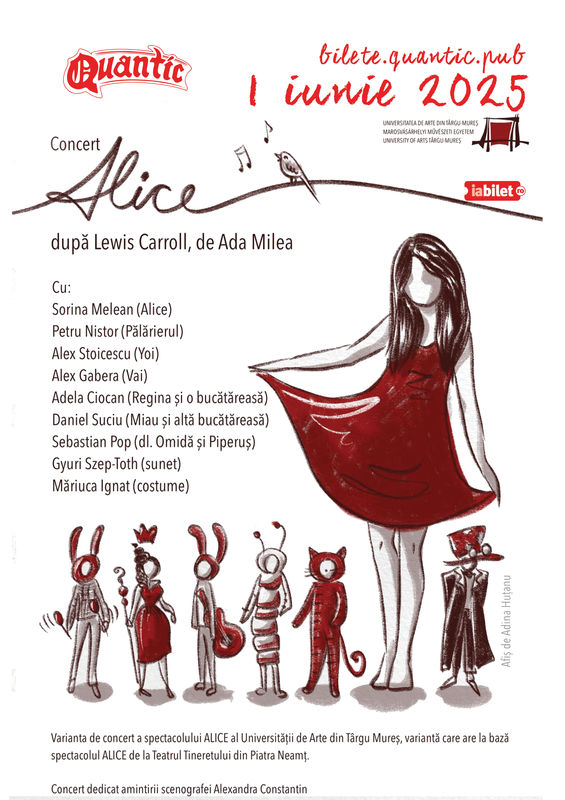 Varianta de concert a spectacolului ALICE, Universitatea de Arte din Târgu Mureș, variantă care are la bază spectacolul ALICE de la Teatrul Tineretului din Piatra Neamț.