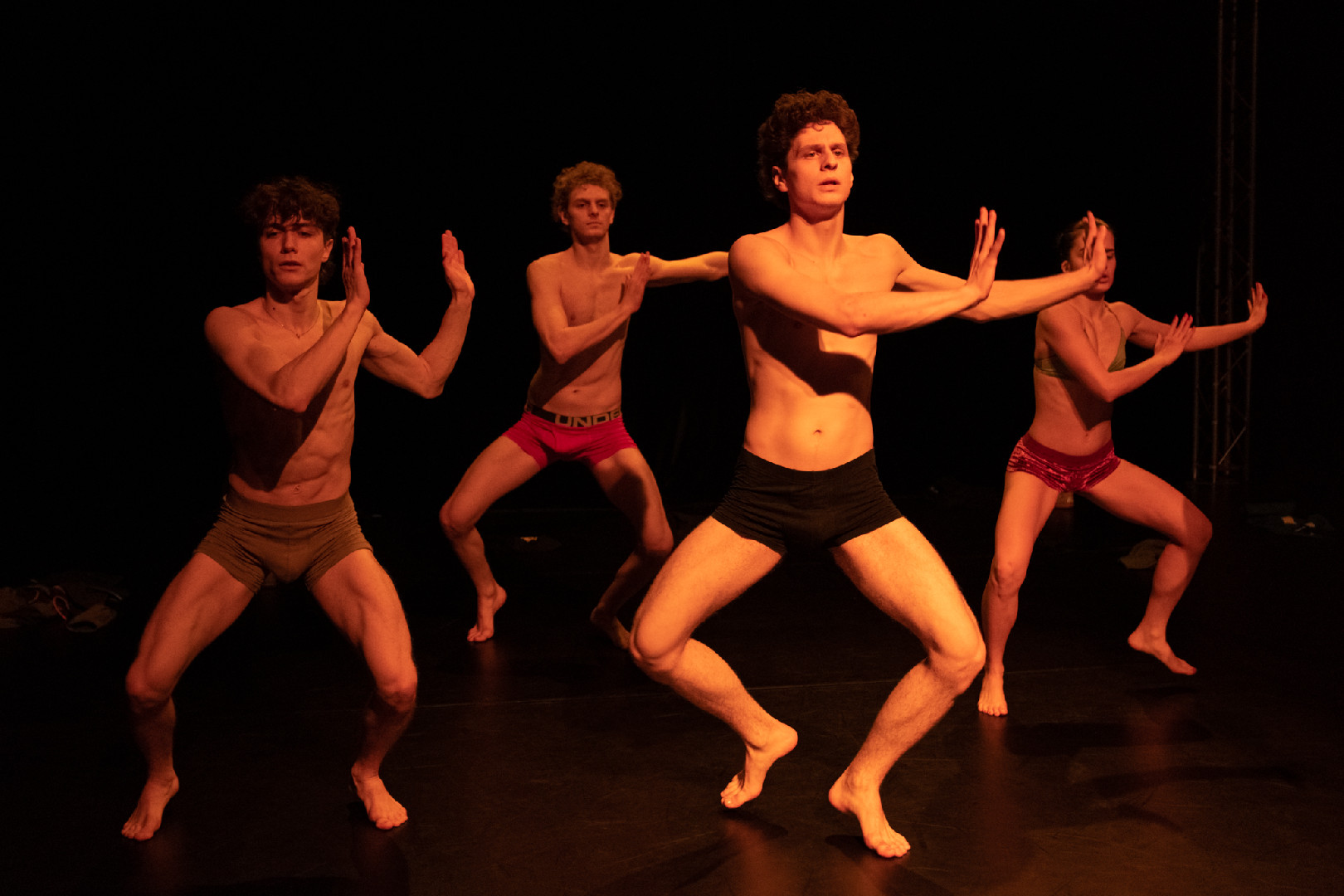 Andrea Gavriliu este în primul rând un mare explorator. Al corpului, al socialului, al ludicului, al emoțiilor de toate felurile prinse fedeleș într-un firesc ce pare mereu facil și la care performerii aleși pe sprânceană, ajung cu foarte multă muncă. Spre deosebire de alte spectacole ale coregrafei, tonul trupurilor rămâne, în ciuda strădaniilor de îndulcire pe ici-colo, unul răstit, al străzii până la capăt neîmblânzită (sau doar al unui secol care nu mai suportă romantismul în relații), al fricii de celălalt și al nesupunerii în fața vulnerabilității. Sincronul doar aduce singurătățile împreună, în fiecare strigă parcă pe altă limbă nevoia de a aparține, dar și groaza de integrare. Tribalul devne un ritual de sudare a grupului. Egalitatea de gen, drepturi, șanse ori posibilități de exprimare rămâne mereu la masa de joc (deși chiar raportul de gen e trei la doi), fidelă poate în acest chip limbajului de streetdance și merge uneori până chiar la a anihila sexul și sexualul, dimpreună cu toate deosebirile vizibile (excelentă scena în care-i vâră în costume colorate, reducându-le numărul de membre și anihilând în cele din urmă chiar umanul, într-o joacă de un incredibil candid!) pe care o gașcă dintr-un cartier de periferie le omogenizează de obicei.