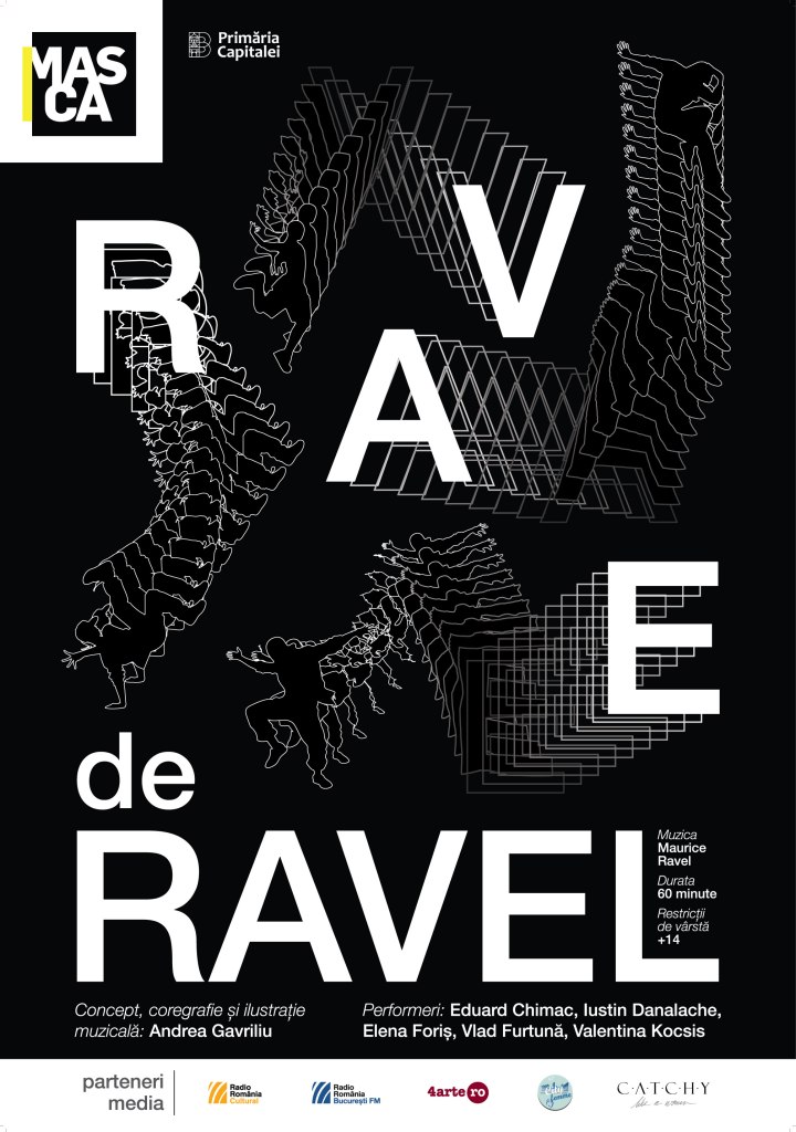 Carevasăzică se poate somptuos și așa, pe auster, sub cerul liber, unde iubirile ard parcă mai tare însuflețite de pericolul din vânturile răscrucilor și pasiunilor trecătoare, la întretăieri de atingeri și de respirații ce-și caută un împreună. Și nu, Ravel nu e doar un pretext, cum se poartă de obicei pe la performance-urile din zilele noastre. Ravel e un cadru de lucru, de studiu atent și explorare minuțioasă a corporalului pe fiecare notă muzicală care capătă sens, ritm, poezie și gesturi elaborate (și câtă muncă și efort se vede pe sub fiecare broboană de sudoare!) într-un narativ solid, prins într-o suită preclasică de dansuri expediate în acompaniament corporal impecabil, ce definește în chip diferit de la o scenă la alta revolta trupurilor la vârsta tuturor îmtrebărilor importante. Un joc vesel și vioi, pe alocuri trist sau grav, atins de impulsuri violente de apărare, dar mereu plin de forță și de zvâc, de salturi aproape mortale în abisurile inimilor de unde se repliază rușinate să nu carecumva să fie văzute și să dea de gol suflețelele zbuciumate, surprinse în toată splendoarea vulnerabilităților lor!…