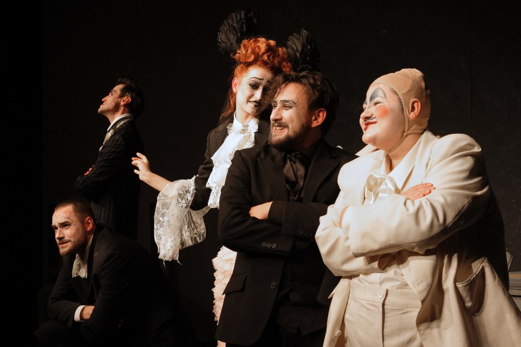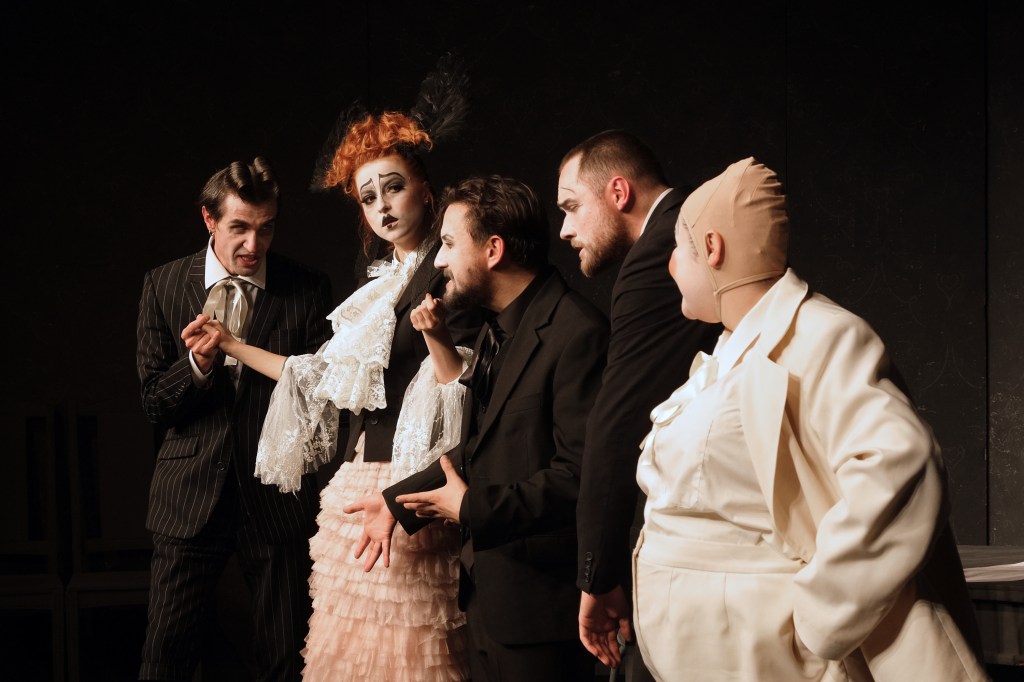 Personajele enigmatice beneficiază de măiestrii de look și interpretare, antrenate mereu la limita suspiciunilor complice și imprevizibilului în care este prins, fără drept de apel, spectatorul. Actorii își joacă fără încetare caracterialul în care au fost trimiși, asigurându-le un gestual fastuos (ar putea funcționa ca spectacol da capo al fine chiar și fără bogatul dialog absurd, prezențele lor având și o solidă dimensiune pantomimică – contribuie din plin și alegerile din machiaj – din care se poate ridica un spectacol în sine, în care frazele par să fi căzut ca din greșeală), ce le împlinește fascinant nevoia de identificare în cadrul confuz înțesat de nelămuri de personaj, lăsate de dramaturg la discreția regizorului.