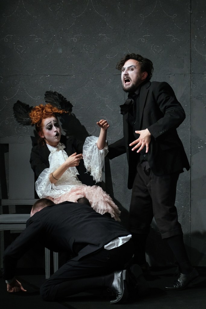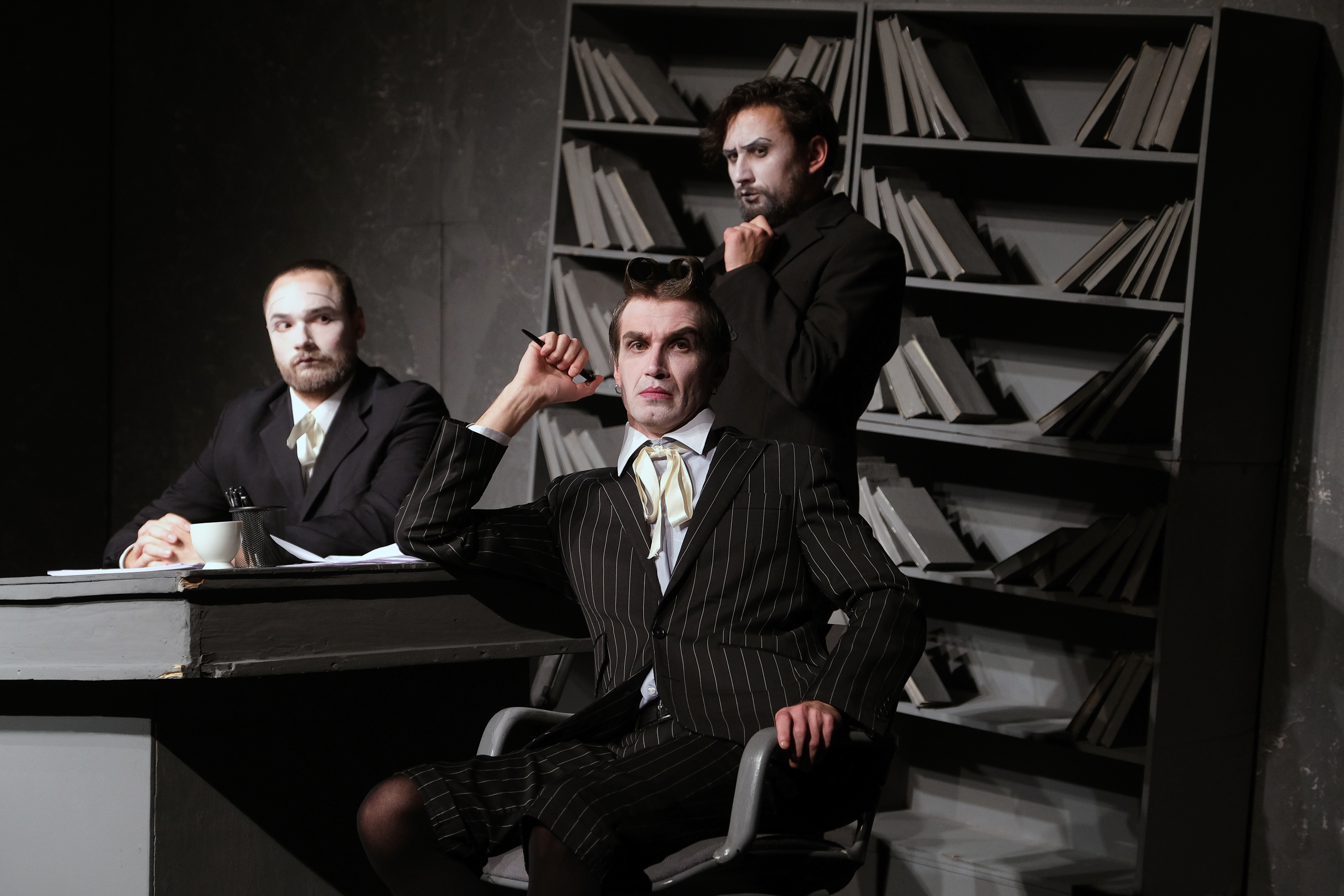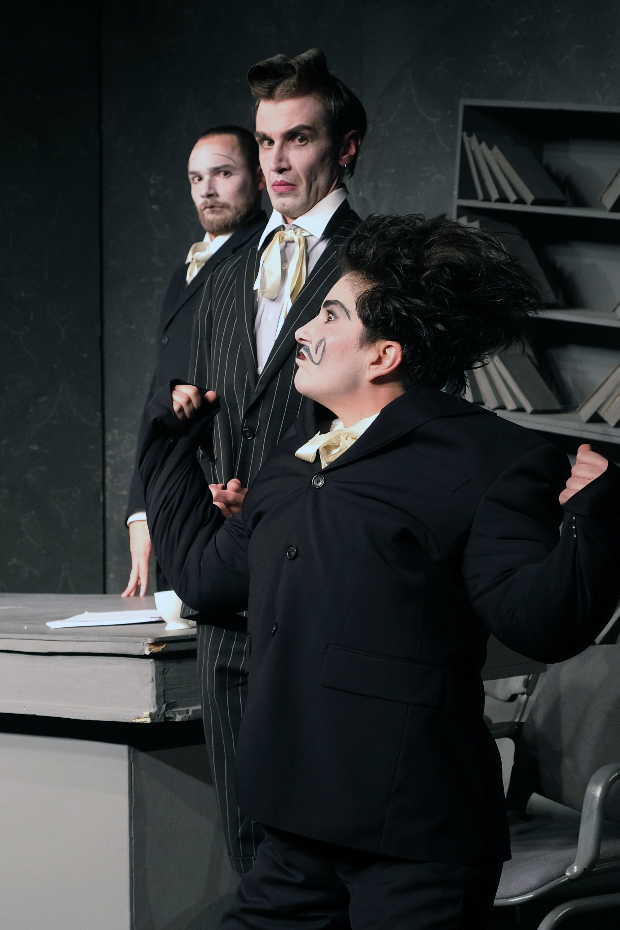 Cătălin Lungu este fascinantul Viconte, înarmat cu o construcție impecabilă de personaj purtat asumat în turbionul absurdului (nici nu știi cât este indicație și cât improvizație) conversațiilor în care se lasă antrenat, asigurând amfitrionar prezența în scenă a unui trio în care este excelent secondat și completat de Radu Canțâr (Baronul) și Pavel Ermacov (Cavalerul), doi actori care atacă temeinic și coerent dinspre capete diferite ale comicului, frivol și sobru în căutare de echilibru, cu care se joacă fără încetare de-a cuvintele și de-a nonsensul lor, născând și întreținând teatral minunate tensiuni, potențând fiecare dramaticul unor situații nespecificate care ar putea fi la fel de bine amuzante, foarte grave sau doar neimportante.