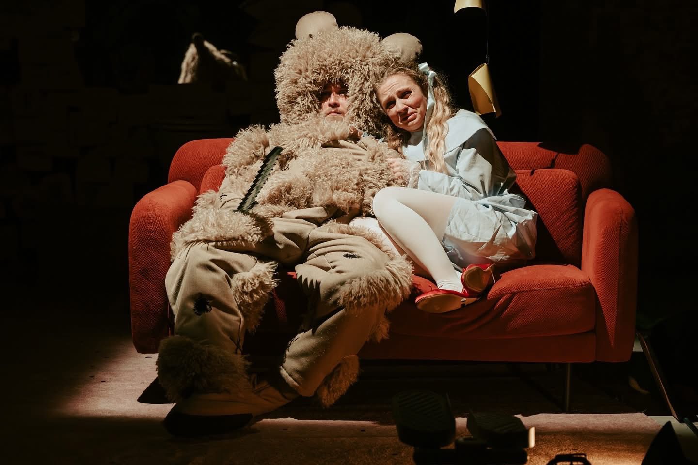 De undeva de deasupra curcubeului (tema muzicală a spectacolului, delicat prelucrată de Adrian Piciorea), spiritul ei (prin vocea acum gravă a Anei Bianca Popescu) veghează încă plin de iubire asupra sufletelor și interacțiunilor lor, ducând mai departe povestea familiei pe care fabuloșii Alina Petrică și Gabi Costin încearcă și reușesc magistral (cu excelentele lor calități de interpretare, dublate de o extraordinară chimie în scenă) să o păstreze întreagă în ciuda pierderii pe care au suferit-o, ingenios rezolvată în textul lui Tiago Rodrigues și excelenta montare a regizorilor Edda Coza și Dan Coza prin felii generoase de energie, ludic și conversație copilăroasă, prinse dinamic într-un fascinant mecanism al jocului de roluri în care redistribuirile și viteza sunt vedete, reușind să umple cu lumină și bucurie și cele mai întunecate și triste colțuri ale traumei de abandon în care s-au trezit aruncați.