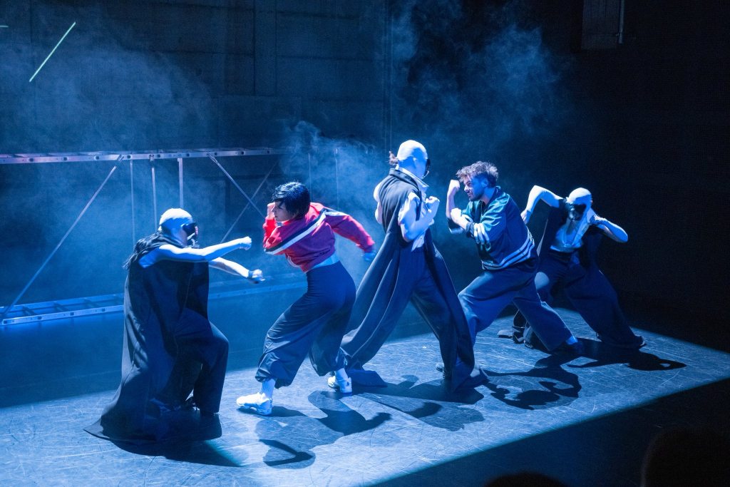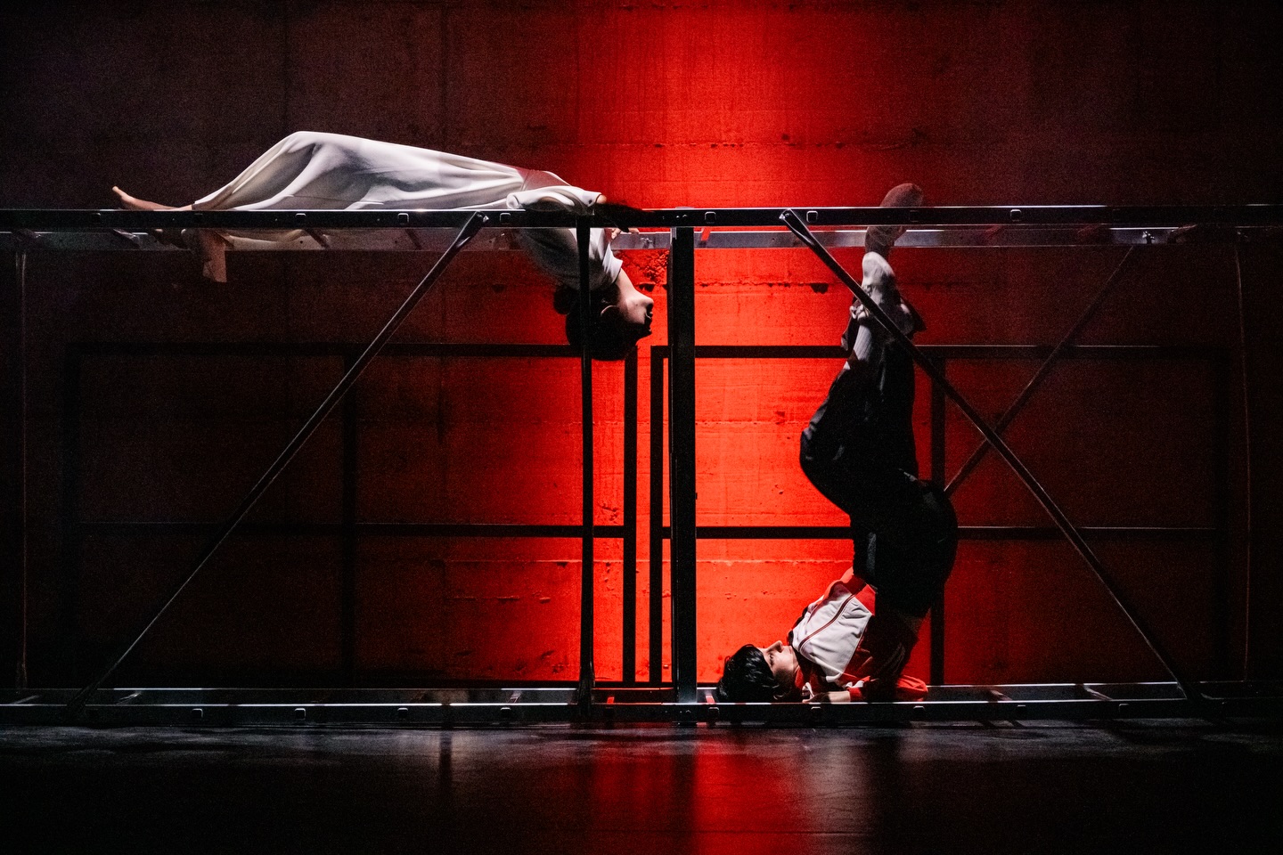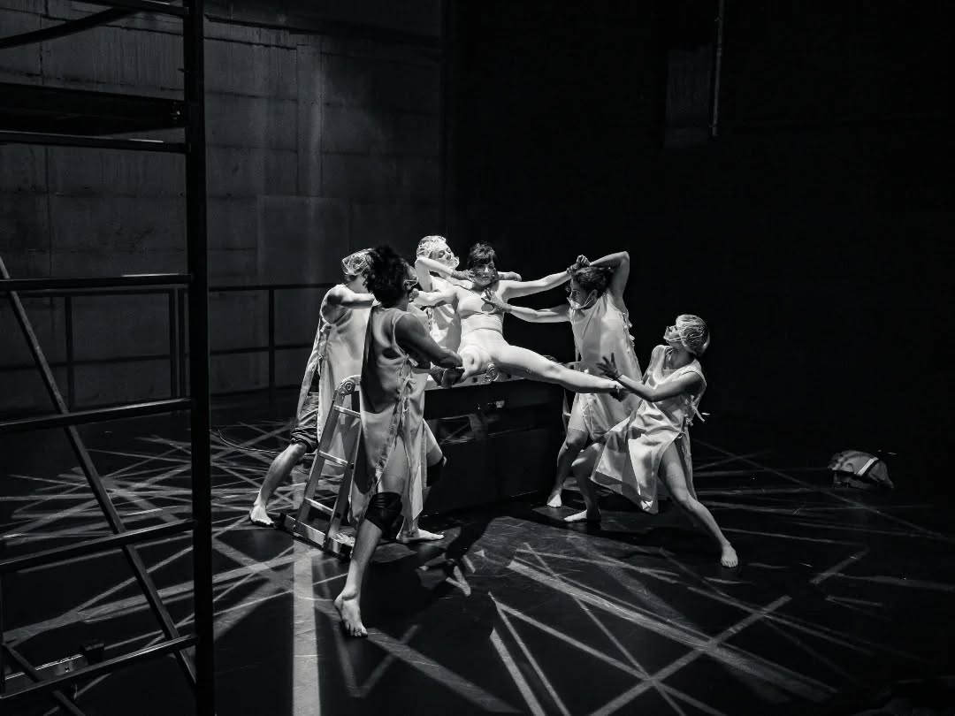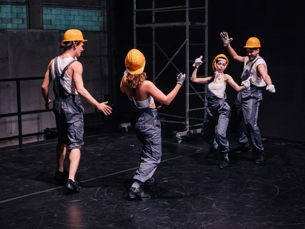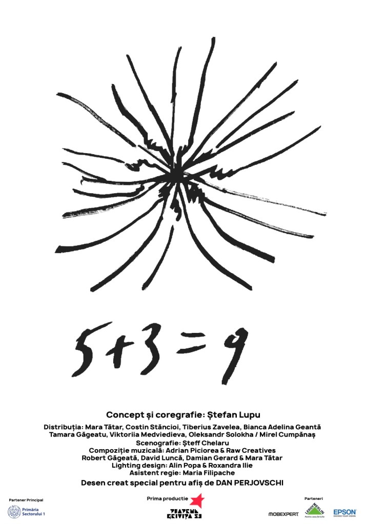 „5+3=9”. O matematică exactă pentru povestea Teatrului Grivița 53, (răs)tălmăcită impecabil teatral de regizorul-coregraf Ștefan Lupu, dirigintele de șantier care și-a urcat muncitorii constructori dansactori pe schelele ridicate inspirat de scenografa Șteff Chelaru pentru a susține echipa de lucru a unui mare vis al Thaliei: acela de a-și ridica scenă nouă pe plaiul mioritic în orașul lui Bucur. Senzațional susținută muzical de Adrian Piciorea & Raw Creatives (Robert Găgeată, David Luncă, Damian Gerard) și Mara Tătar (nu cred că putea fi mai bine pus în valoare dramaticul tumultos al acestui spectacol străbătut de aritmii zgomotoase, al cărui superb acustic, ce va fi cu siguranță premiat, își dozează ritmurile și își alternează genurile nu doar spre a îmbrăca prestațiile excelente ale artiștilor dansatori din scenă, Mara Tătar, Costin Stăncioi, Tiberius Zavelea, Bianca Adelina Geantă, Tamara Găgeatu și Viktoriia Medvedieva, prin intervențiile live decisive ale artiștilor muzicieni Oleksandr Slokha și Mirel Cumpănaș (alternativ în distribuție), dar și pentru a comenta și multiplica exponențial emoționalul învârtit inteligent în poezia corporală imaginată de Ștefan Lupu în jurul poveștii de viață și de ctitor de teatru a lui Chris Simion Mercurian, care a vândut casa bunicii și a cumpărat ruinele unei case vechi între ale cărei ziduri și-a construit cu răbdare visul.