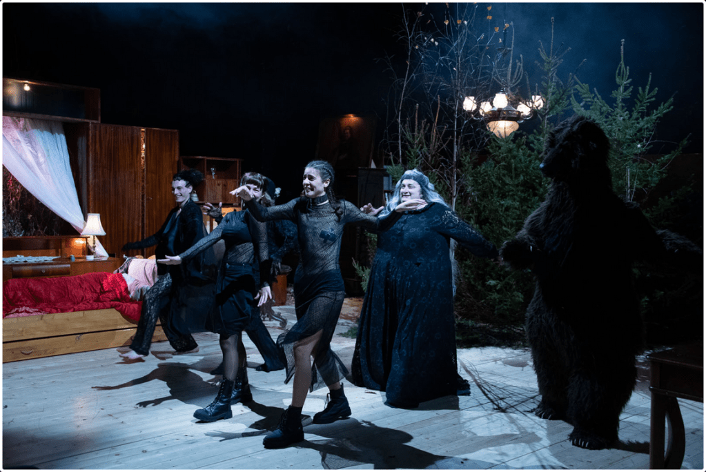 Priceput învârtite în jurul versatilului Nagy-Kopeczky Kristóf (pe rând chelner intransigent al fish&chips-ului secuiesc, cioban iubăreț în vârful Dealului Fericirii Intermitente, amant de ocazie și stilist personal al lui Zsüli), vârât cu mult umor în blana ursului sinucigaș care l-a însoțit pe Huba prin viață și prin povestea teatrală, după care și-a lăsat rămășițele pământești pe măsuța din salonul conacului (excelent, Rudi!).