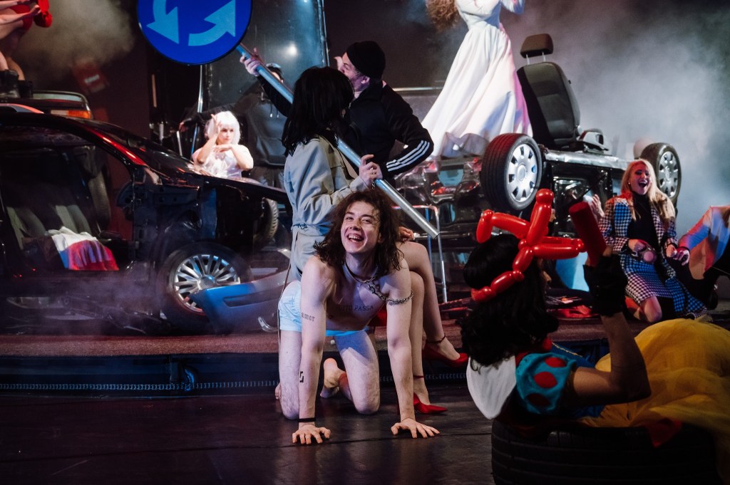 Teatral. Cu totul. Și bucată cu bucată, în cea mai dureroasă strângere de mână care-i retează capetele de afiș laolaltă cu vlăstarele mai tinere, îi dă jos măștile și îi sfârtecă sufletul, mâinile și picioarele până nu mai rămâne nimic din el. Doar niște fiare contorsionate dintre care fiecare slujitor al scenei caută să se salveze cum poate. Genială ideea lui Andrei Măjeri cu acest apocaliptic accident dramatic care-și înnoadă episoadele pe câmpul de luptă al Scenei Mari a Naționalului mureșean, rămas deschis dezbaterilor de foarte multe feluri.