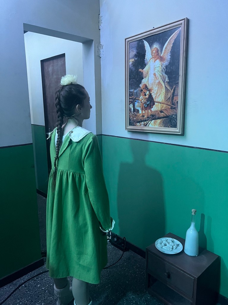 Dintre ei se distinge din nou Fănica excelentei Mălina Lazăr, o actriță în care se îmbină fascinant candoarea și forța, aici o fetiță forțată să se maturizeze mult înainte de vreme, al cărei suflet curat în căutare de mângâiere și validare (pe care doar tanti Ilona îl mai cârpește din când în când cu promisiuni deșarte și povești egocentrice din alt familial – din nou un cuplu excelent în scenă cu Pușa Darie), încă ros de curiozitate și fascinat de minunile Crăciunului bine ascunse în cadourile din bradul din piața publică, miezul nucilor de aur și dulapurile cu povești și surprize ale Îngerului Domnului, e împroșcat nemilos cu sânge de mamă și de cocoș sacrificat, servit cu minciuni la farfurie și la pian pe care un tată ursuz și neconsolat, cu sentimente înăbușite (Cosmin Maxim, explodat în cele din urmă într-un episod furibund care va declanșa cele mai tulburătoare emoții ale fetei), le-a copt în jurul dublei trădări pe care nu s-a priceput să o gestioneze și pe care e nevoit să o înfrunte din nou dând piept cu nea Mișu.